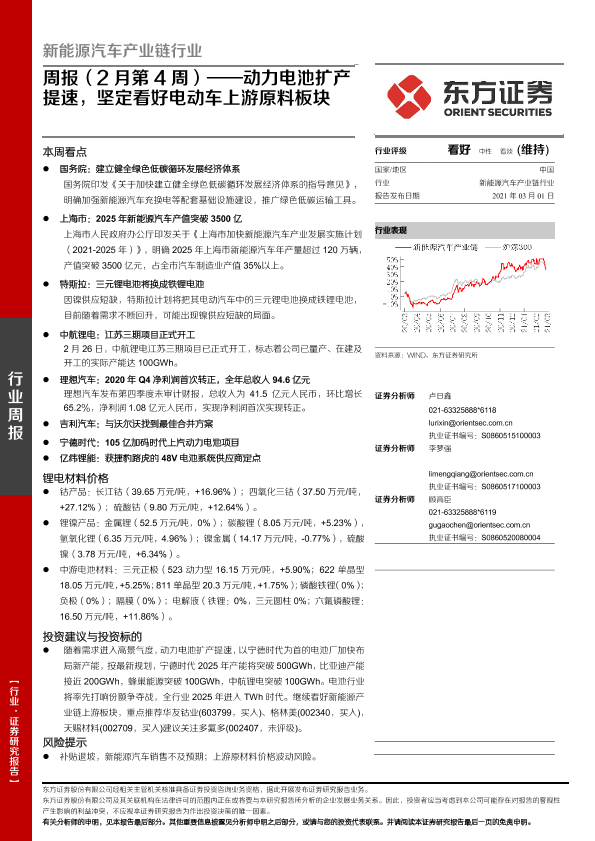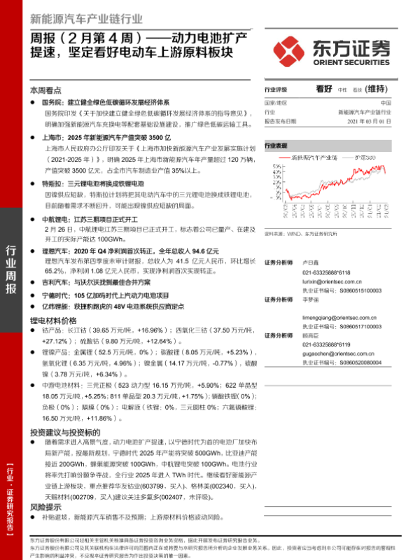 【东方证券】【20210301】新能源汽车产业链行业周报(2月第4周):动力电池扩产提速,坚定看好电动车上游原料板块-20页
