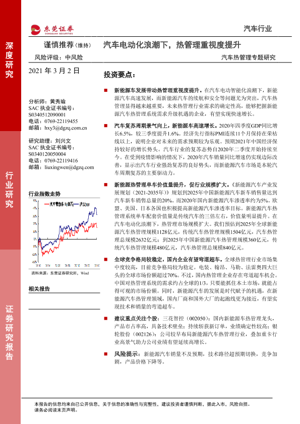 【东莞证券】【20210302】汽车热管理专题研究:汽车电动化浪潮下,热管理重视度提升-24页