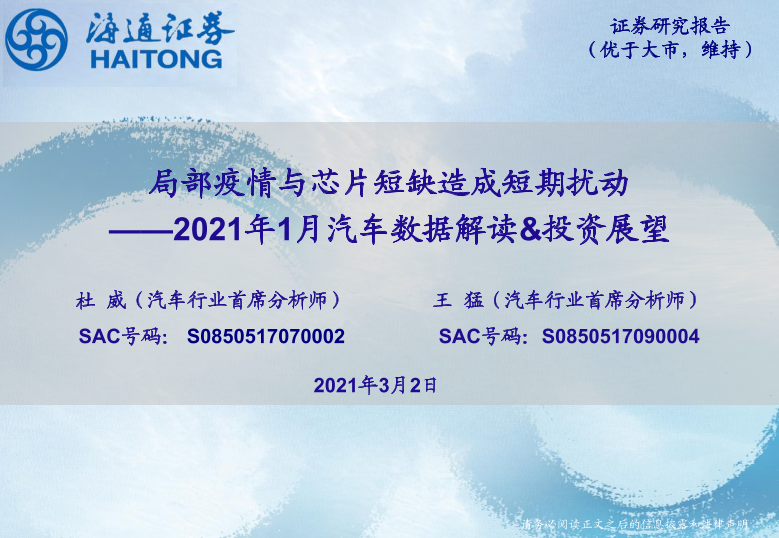 【海通证券】【20210302】2021年1月汽车数据解读&投资展望:局部疫情与芯片短缺造成短期扰动-23页
