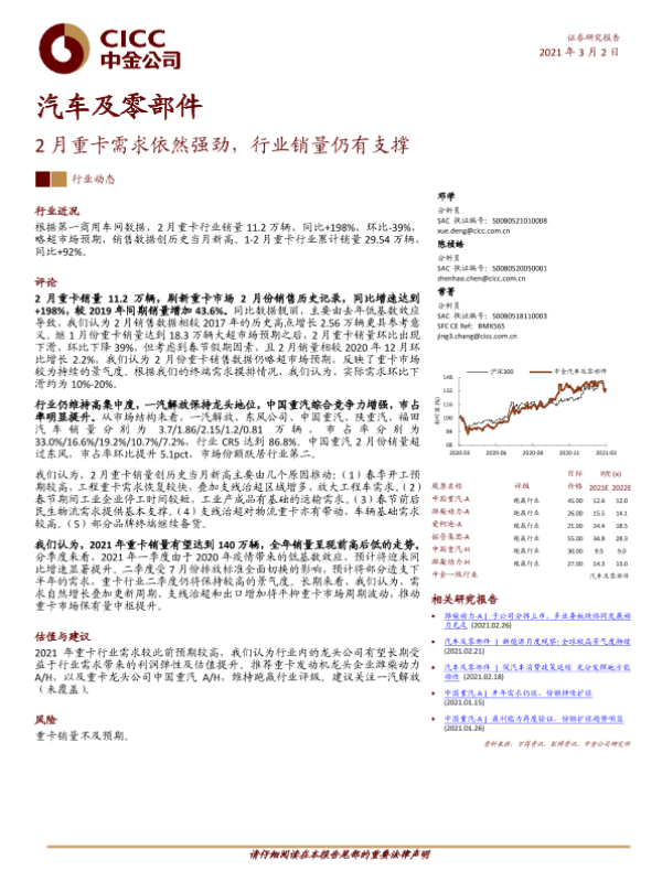 【中金公司】【20210302】2月重卡需求依然强劲,行业销量仍有支撑-5页