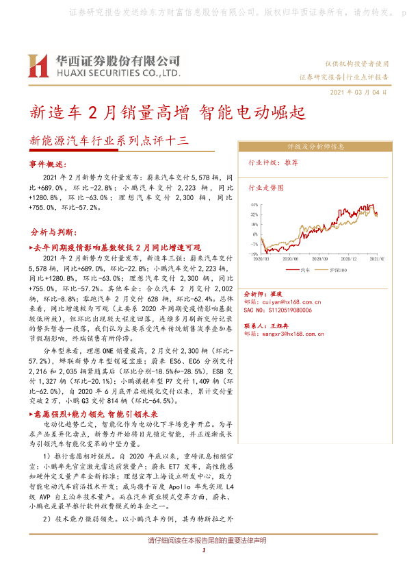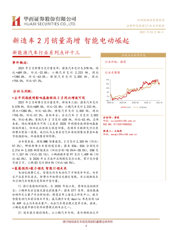 【华西证券】【20210304】新能源汽车行业系列点评十三:新造车2月销量高增智能电动崛起-9页