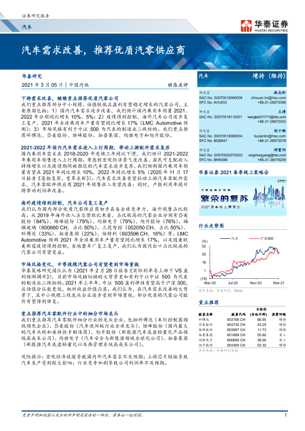 【华泰证券】【20210305】汽车需求改善,推荐优质汽零供应商-6页