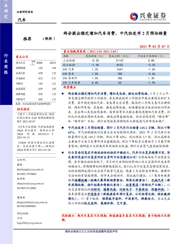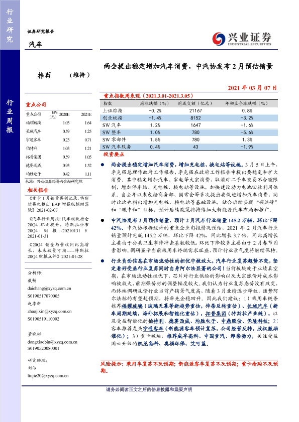 【兴业证券】【20210307】两会提出稳定增加汽车消费,中汽协发布2月预估销量-24页