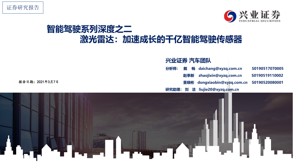 【兴业证券】【20210307】汽车行业智能驾驶系列深度之二:激光雷达:加速成长的千亿智能驾驶传感器-58页