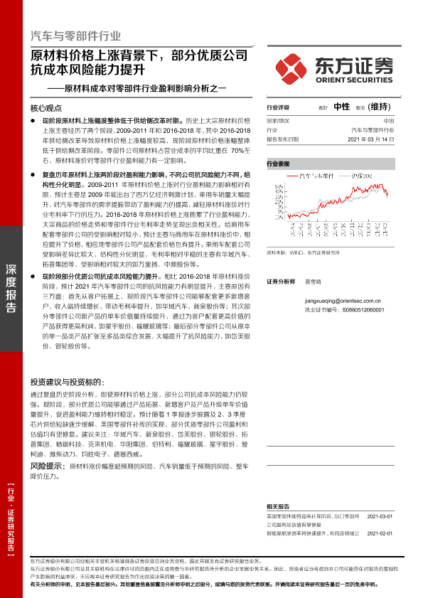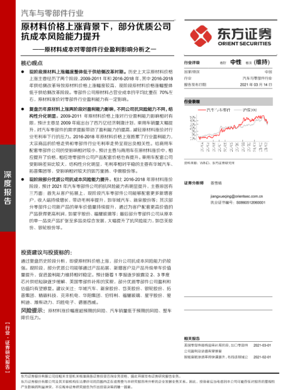 【东方证券】【20210314】汽车与零部件行业:原材料成本对零部件行业盈利影响分析之一:原材料价格上涨背景下,部分优质公司抗成本风险能力提升-24页