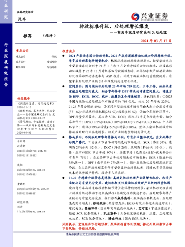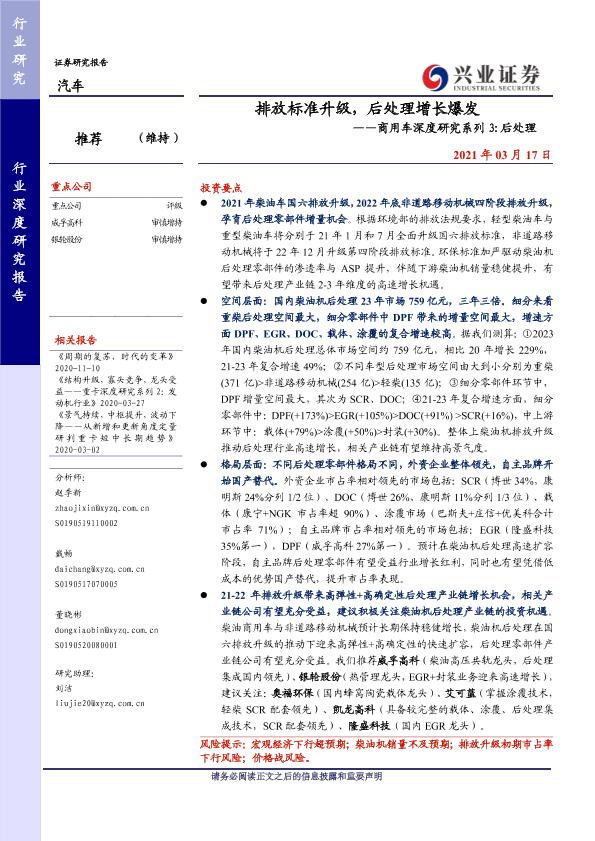 【兴业证券】【20210317】排放标准升级,后处理增长爆发——商用车深度研究系列 3 后处理-38页