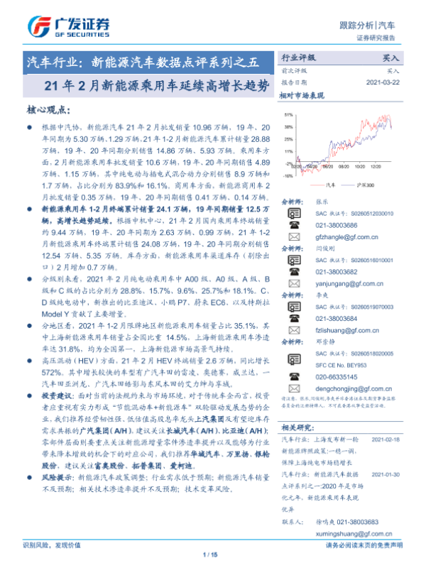 【广发证券】【20210322】汽车行业:新能源汽车数据点评系列之五:21年2月新能源乘用车延续高增长趋势-15页