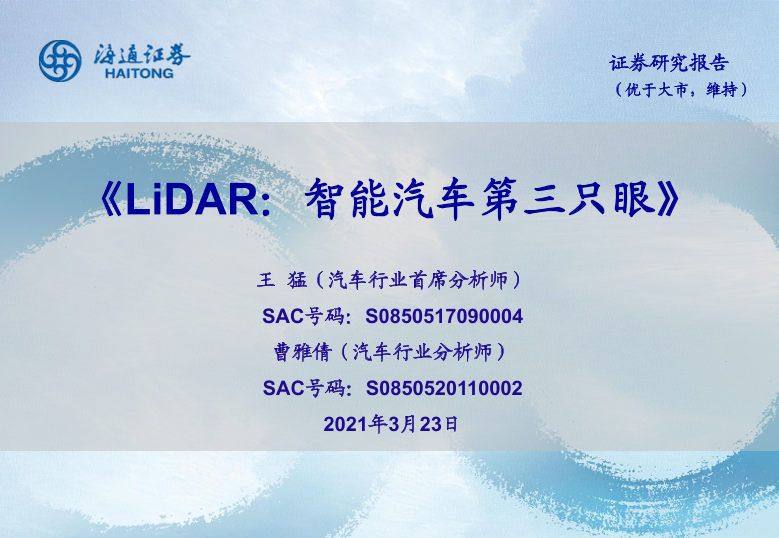 【海通证券】【20210323】LiDAR:智能汽车第三只眼-45页