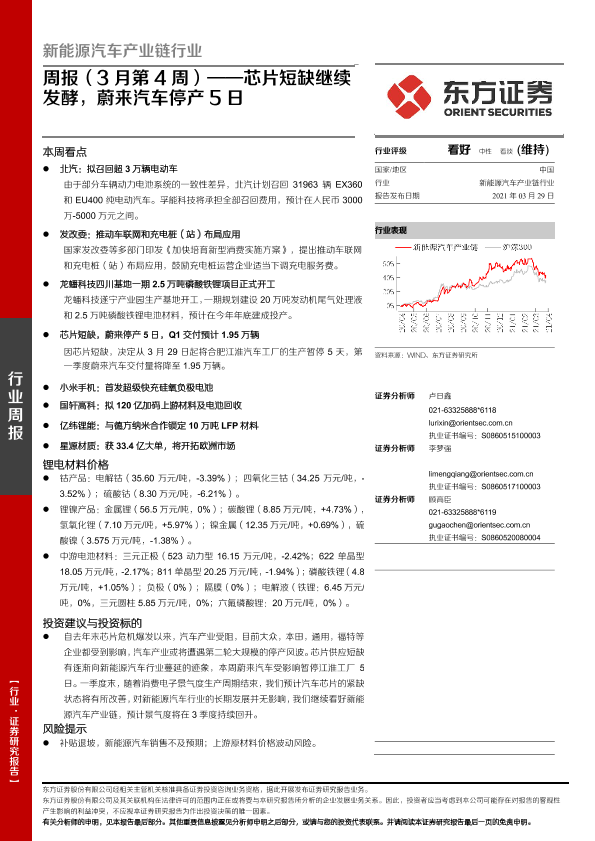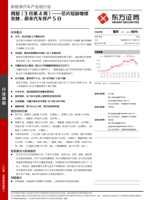 【东方证券】【20210329】20210329-东方证券-新能源汽车产业链行业周报(3月第4周):芯片短缺继续发酵,蔚来汽车停产5日-20页