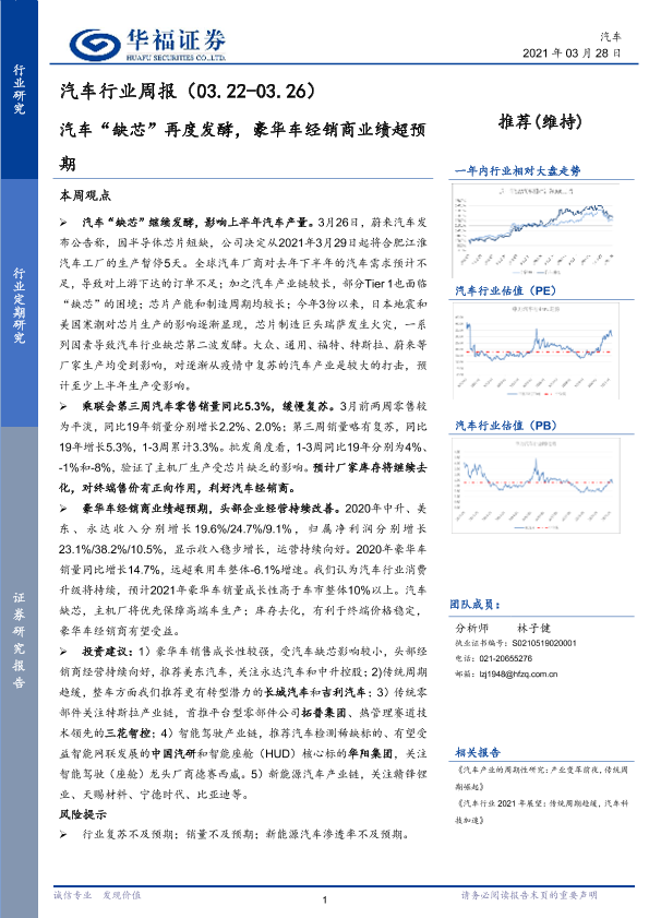 【华福证券】【20210328】汽车行业周报:汽车“缺芯”再度发酵,豪华车经销商业绩超预期-8页