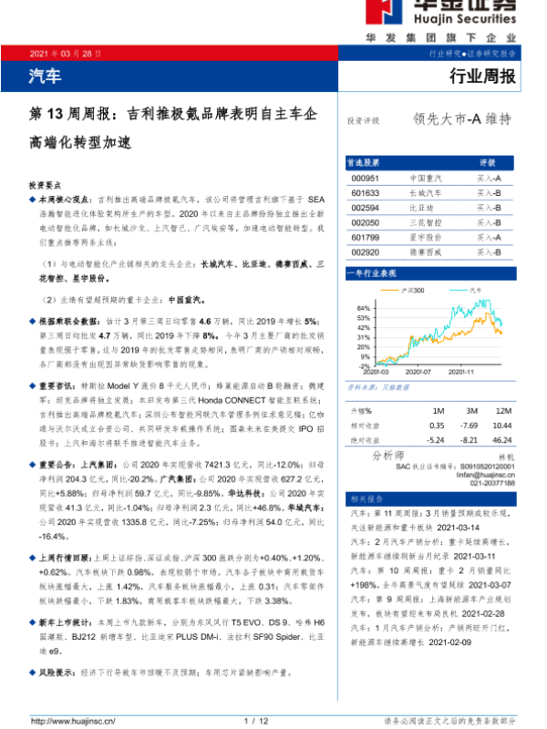 【华金证券】【20210328】汽车第13周周报:吉利推极氪品牌表明自主车企高端化转型加速-12页