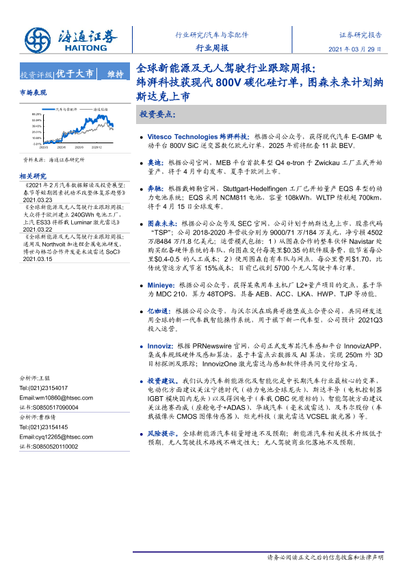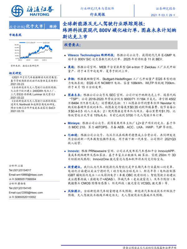 【海通证券】【20210329】全球新能源及无人驾驶行业跟踪周报:纬湃科技获现代800V碳化硅订单,图森未来计划纳斯达克上市-2页
