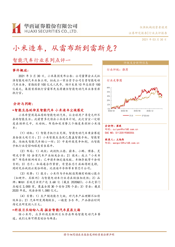 【华西证券】【20210330】智能汽车行业系列点评一:小米造车,从雷布斯到雷斯克?-6页