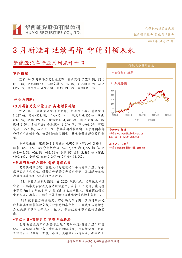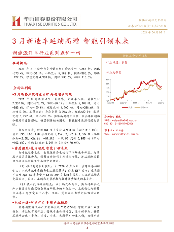 【华西证券】【20210402】20210402-华西证券-新能源汽车行业系列点评十四:3月新造车延续高增 智能引领未来-8页