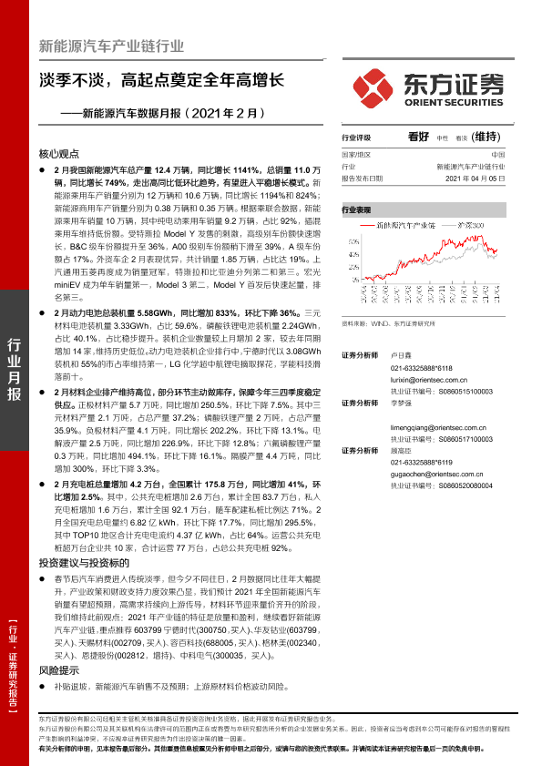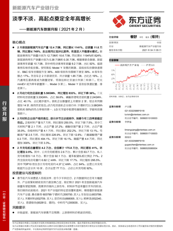【东方证券】【20210405】新能源汽车数据月报(2021年2月):淡季不淡,高起点奠定全年高增长-24页