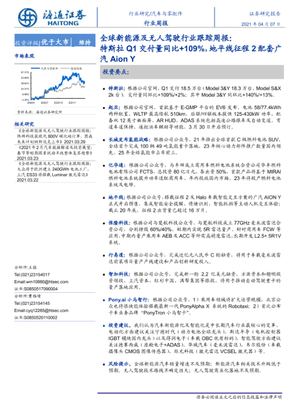 【海通证券】【20210407】全球新能源及无人驾驶行业跟踪周报:特斯拉Q1交付量同比+109%,地平线征程2配套广汽Aion Y-2页