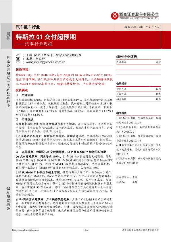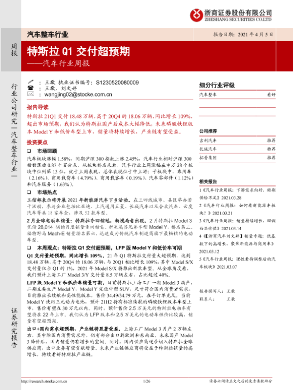【浙商证券】【20210405】20210405-浙商证券-汽车行业周报:特斯拉Q1交付超预期-26页