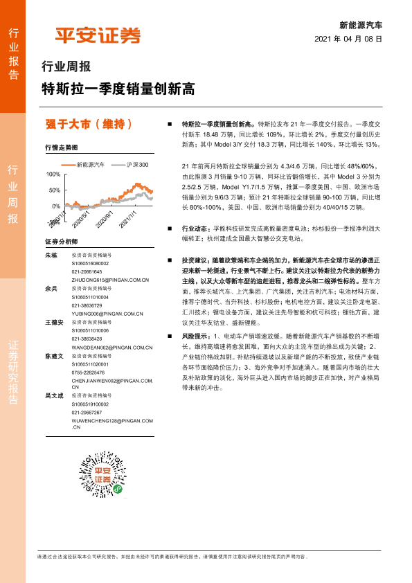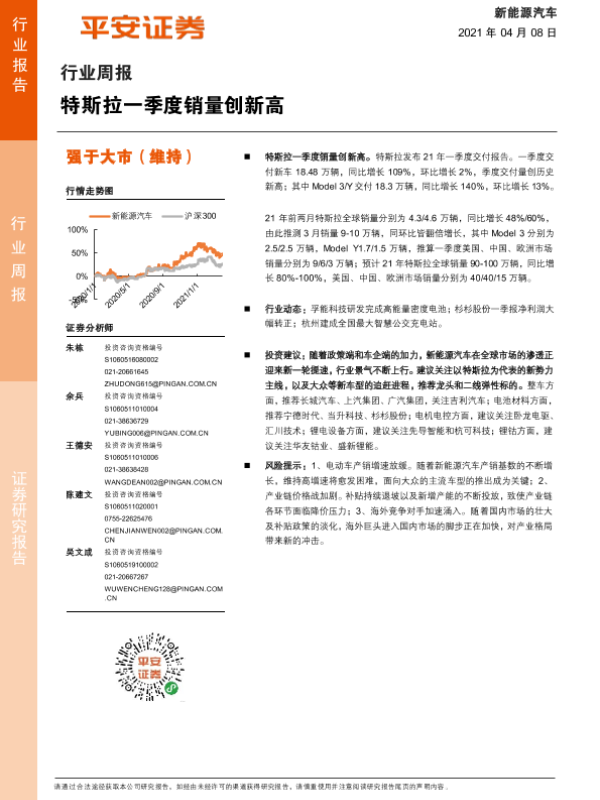【平安证券】【20210408】20210408-平安证券-新能源汽车行业周报:特斯拉一季度销量创新高-10页