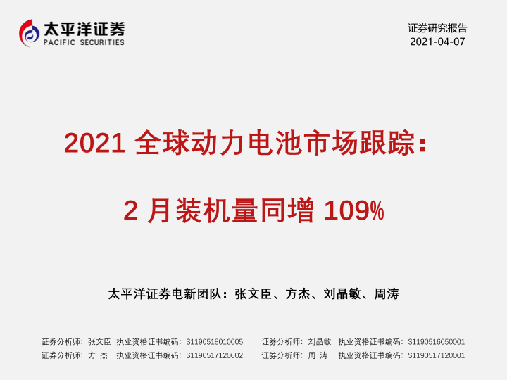 【太平洋证券】【20210407】2021全球动力电池市场跟踪:2月装机量同增109%-16页