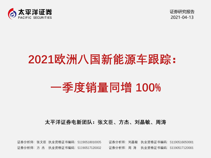 【太平洋证券】【20210413】2021欧洲八国新能源车跟踪:一季度销量同增100%-12页