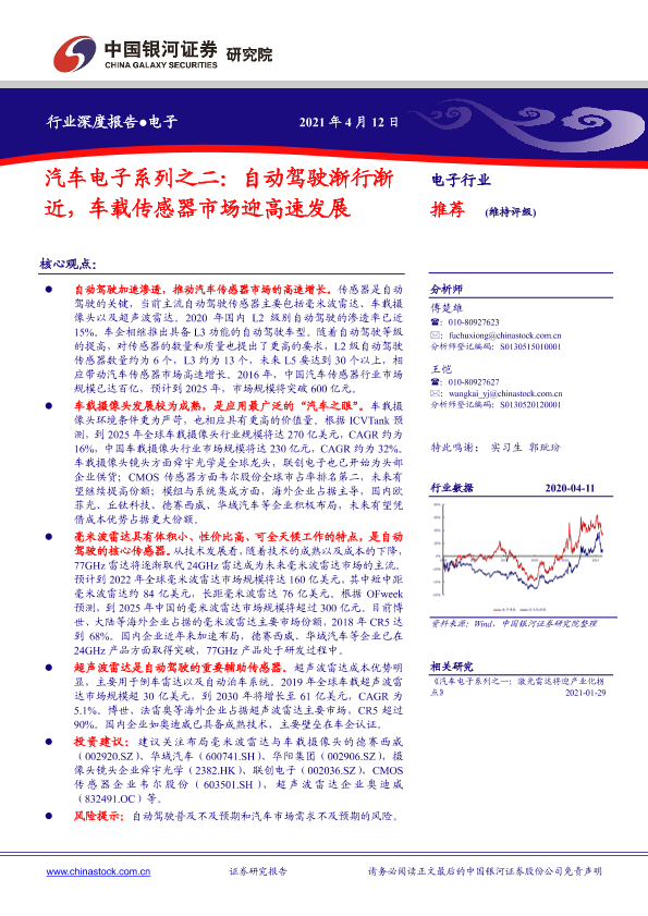 【银河证券】【20210412】汽车电子系列之二:自动驾驶渐行渐近,车载传感器市场迎高速发展-28页