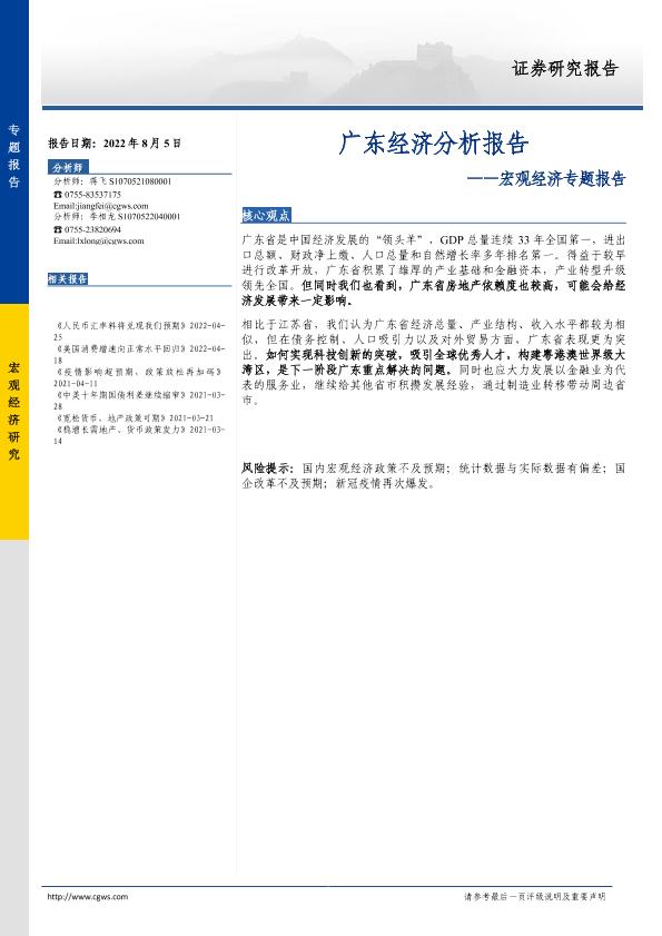 【长城证券】【20220805】宏观经济专题报告:广东经济分析报告-21页