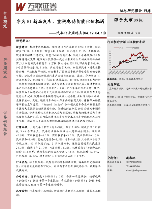 【万联证券】【20210419】华为 HI新品发布,重视电动智能化新机遇-11页