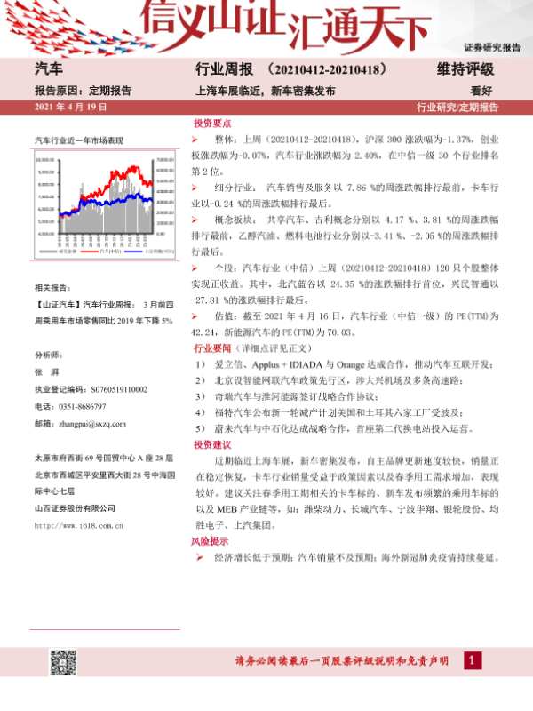 【山西证券】【20210419】汽车行业周报:上海车展临近,新车密集发布-17页