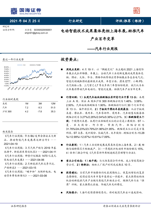 【国海证券】【20210425】电动智能技术成果集体亮相上海车展,助推汽车产业百年变革-13页