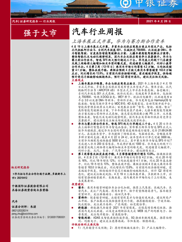 【中银证券】【20210426】汽车行业周报:上海车展正式开幕,华为与赛力斯合作卖车-17页