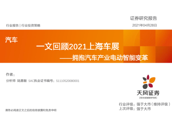 【天风证券】【20210428】2021上海车展——拥抱汽车产业电动智能变革-55页