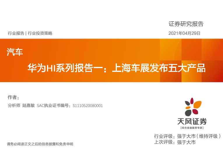 【天风证券】【20210429】华为HI系列报告一:上海车展发布五大产品-46页