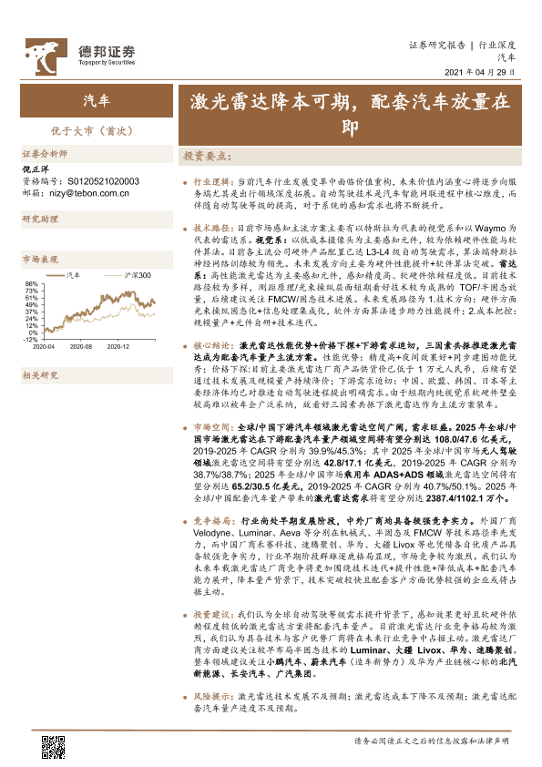【德邦证券】【20210429】汽车行业深度:激光雷达降本可期,配套汽车放量在即-53页