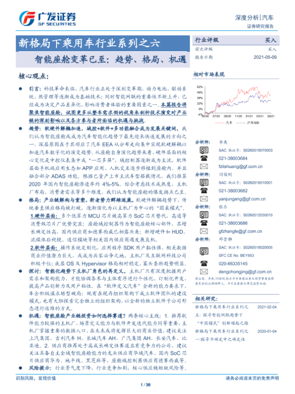 【广发证券】【20210509】新格局下乘用车行业系列之六:智能座舱变革已至:趋势、格局、机遇-38页