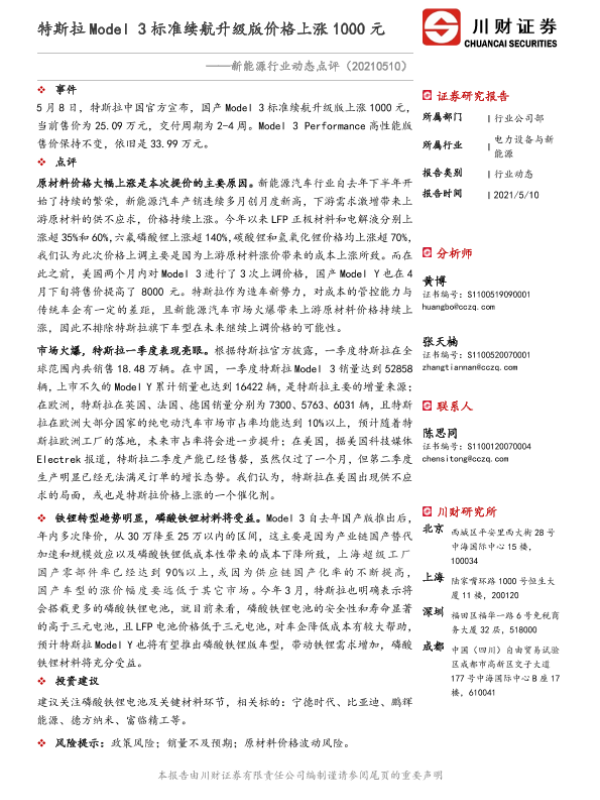【川财证券】【20210510】特斯拉Model3标准续航升级版价格上涨1000元-2页