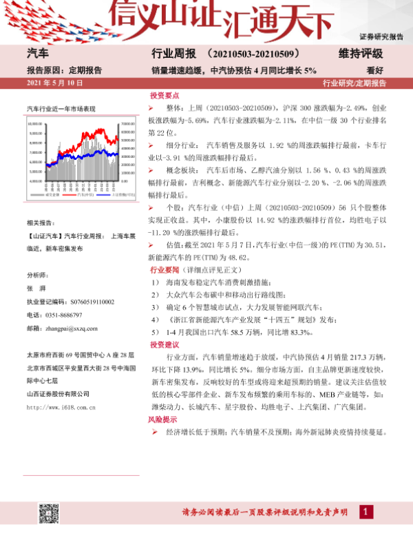 【山西证券】【20210510】20210510-山西证券-汽车行业周报:销量增速趋缓,中汽协预估4月同比增长5%-12页