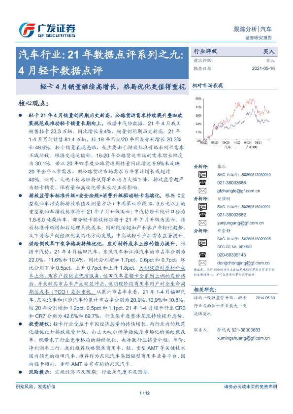 【广发证券】【20210516】21年数据点评系列之九:4月轻卡数据点评:轻卡4月销量继续高增长,格局优化更值得重视-12页