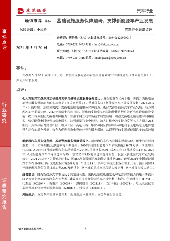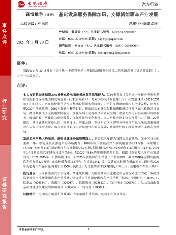 【东莞证券】【20210520】汽车行业跟踪点评:基础设施服务保障加码,支撑新能源车产业发展-2页