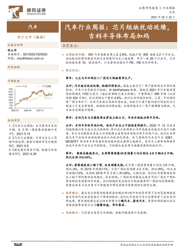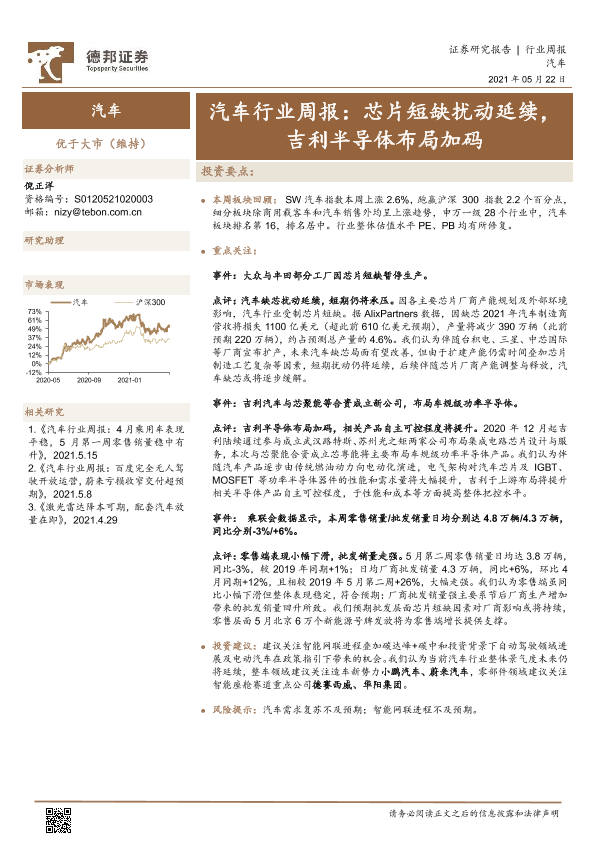 【德邦证券】【20210522】汽车行业周报:芯片短缺扰动延续,吉利半导体布局加码-13页
