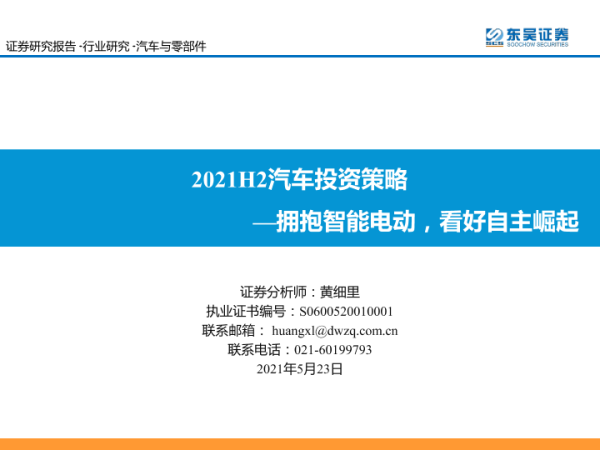 【东吴证券】【20210523】2021H2汽车投资策略:拥抱智能电动,看好自主崛起-45页
