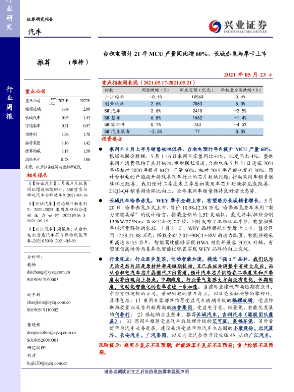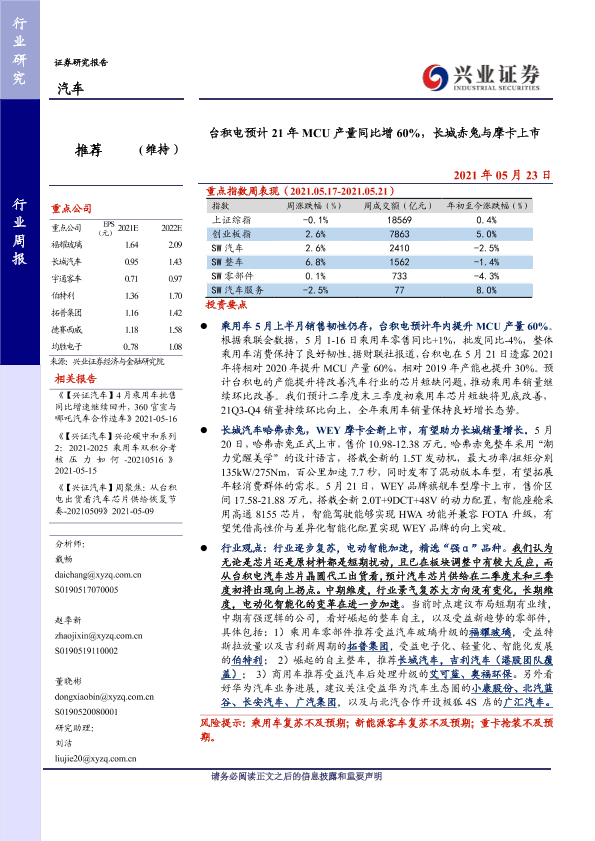 【兴业证券】【20210523】台积电预计 21年 MCU产量同比增 60%,长城赤兔与摩卡上市-23页
