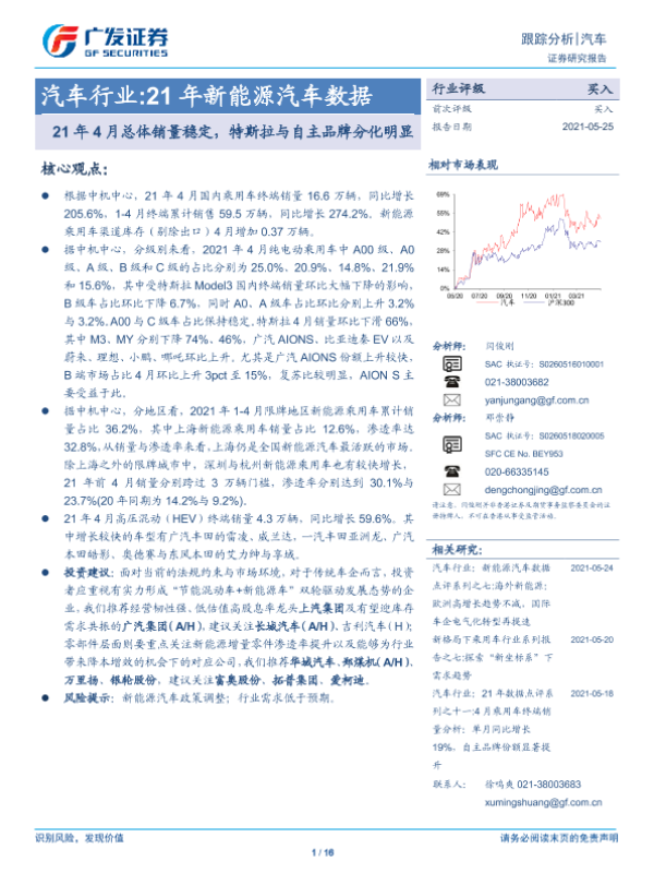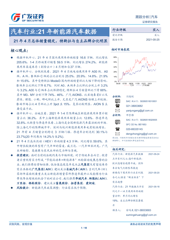 【广发证券】【20210525】21年新能源汽车数据:21年4月总体销量稳定,特斯拉与自主品牌分化明显-16页