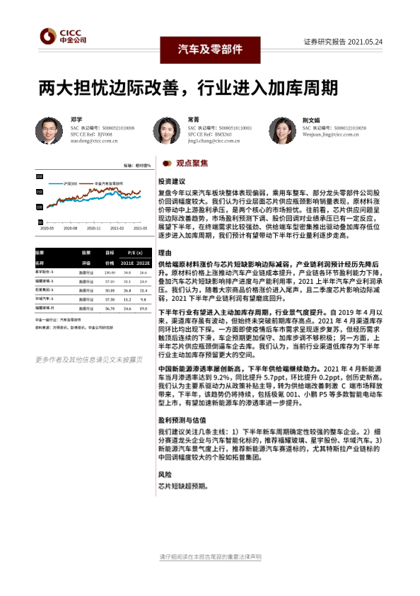 【中金公司】【20210524】汽车及零部件行业:两大担忧边际改善,行业进入加库周期-21页