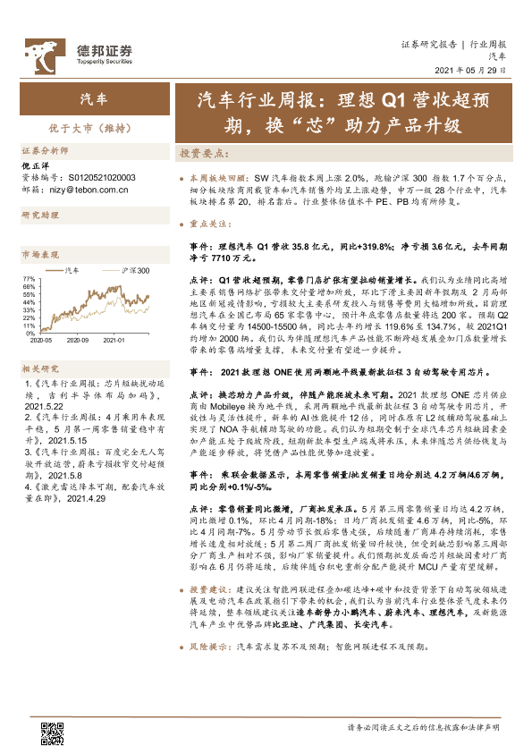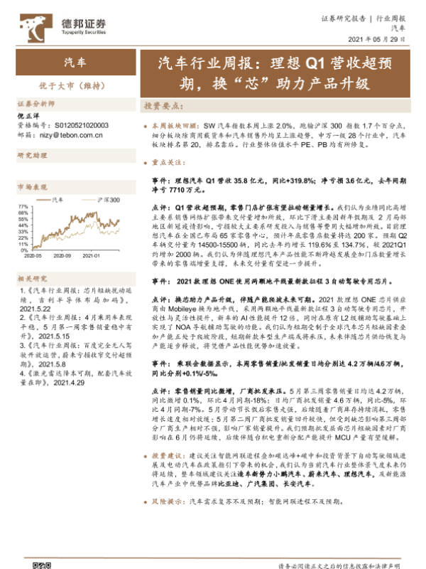 【德邦证券】【20210529】汽车行业周报:理想Q1营收超预期,换“芯”助力产品升级-13页