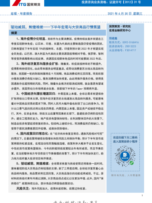 【国贸期货】【20210630】下半年宏观与大宗商品行情展望:驱动减弱,辉煌难续-24页