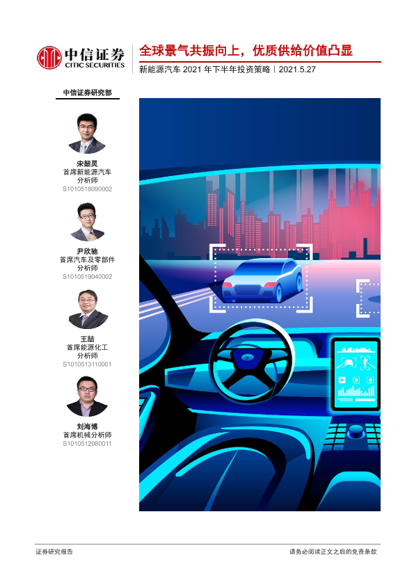【中信证券】【20210527】全球景气共振向上,优质供给价值凸显 - 新能源汽车2021年下半年投资策略-50页
