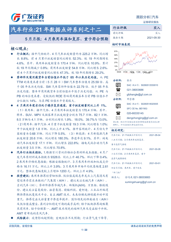 【广发证券】【20210530】21年数据点评系列之十二 4月乘用车温和复苏、重卡符合预期-22页