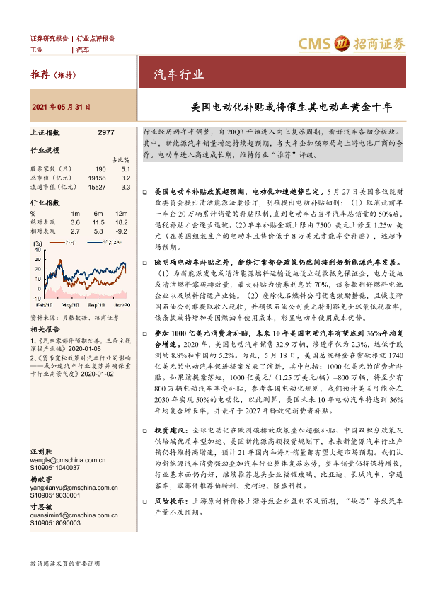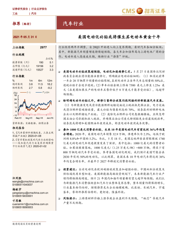 【海通证券】【20210531】汽车行业点评报告:美国电动化补贴或将催生其电动车黄金十年-3页