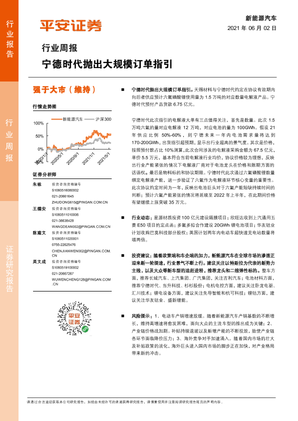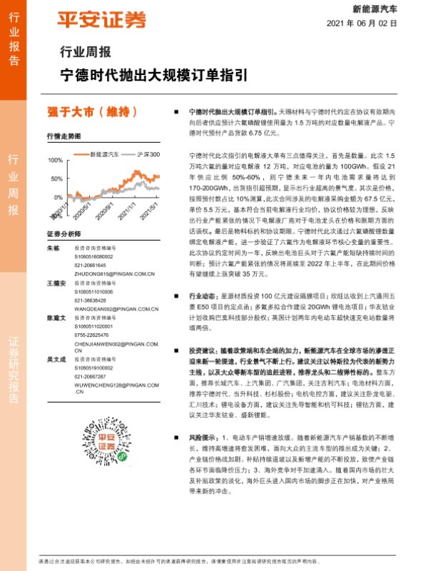 【平安证券】【20210602】20210602-平安证券-新能源汽车行业周报:宁德时代抛出大规模订单指引-10页