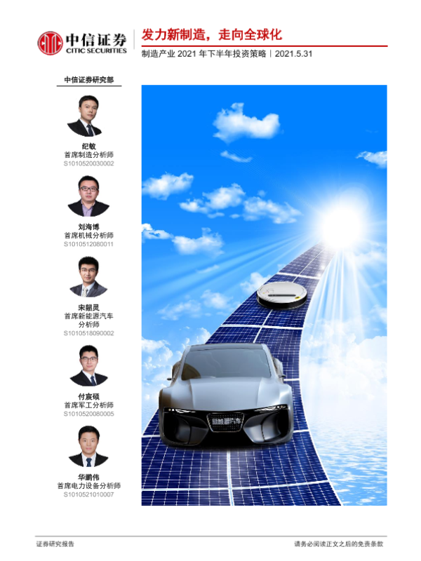 【中信证券】【20210531】汽车及零部件行业:制造产业2021年下半年投资策略-发力新制造,走向全球化-89页